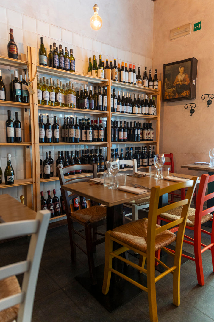 Abbiamo tutti i giorni al calice 8/10 etichette a rotazione proprio per questo non abbiamo una carta dei vini. Scegliamo scrupolosamente cosa può stare sui nostri scaffali, per offrire il meglio ai nostri commensali cercando di soddisfare le richieste e il loro palato, ma soprattutto la loro felicità. I nostri vini sono in vendita anche da asporto, da degustare comodamente a casa o se si vuole fare un semplice regalo.